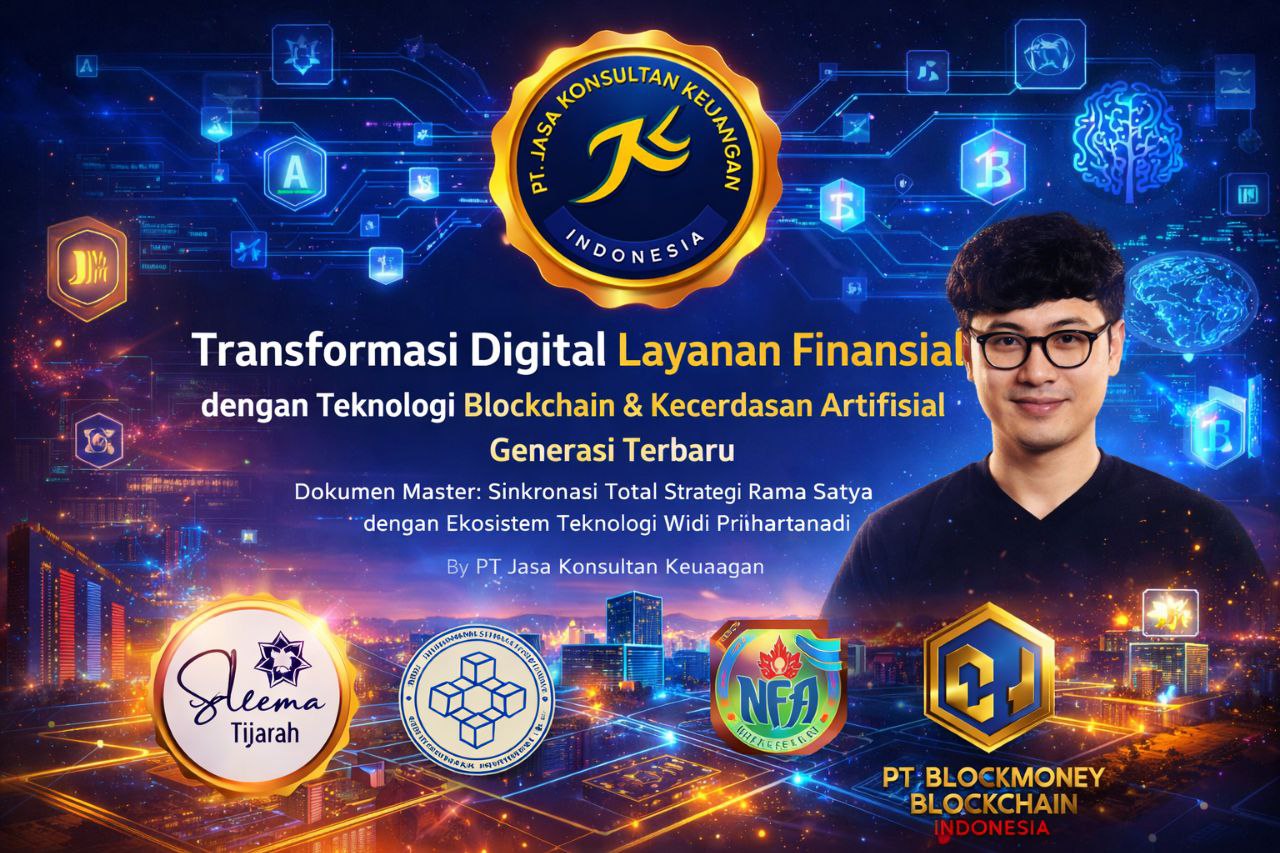 TRANSFORMASI DIGITAL LAYANAN FINANSIAL DENGAN TEKNOLOGI BLOCKCHAIN & KECERDASAN ARTIFISIAL GENERASI TERBARU DOKUMEN MASTER: SINKRONASI TOTAL STRATEGI RAMA SATYA DENGAN EKOSISTEM TEKNOLOGI WIDI PRIHARTANADI BY PT JASA KONSULTAN KEUANGAN